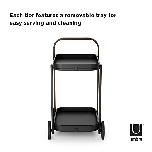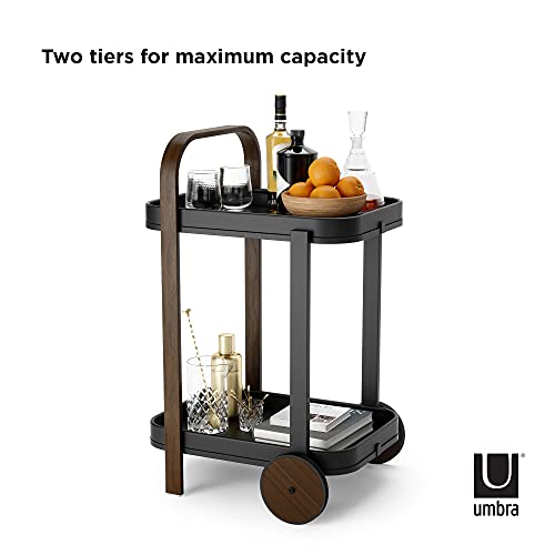 Le chariot de bar Bellwood offre une grande capacité de rangement sur 2 niveaux, avec des roues caoutchoutées pour faciliter son déplacement. Ce chariot mini bar à 2 étagères peut être utilisé comme chariot de service moderne ou comme table d’appoint, avec un détail en bois bicolore qui apporte chaleur à la pièce.